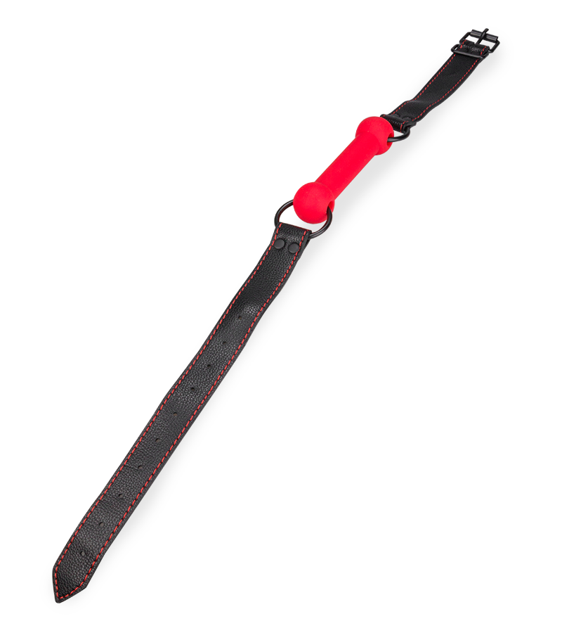 Stop your partner from talking with this Silicone and faux leather bit gag!